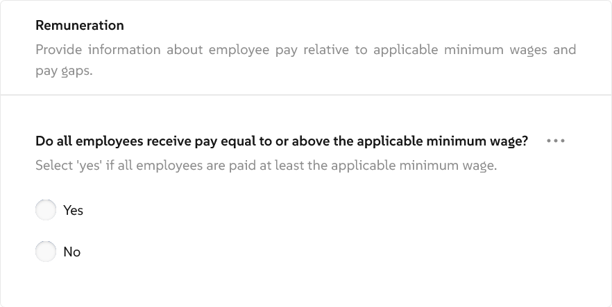 Our questionnaires are based on the EFRAG standards. We continuously update and extend the questionnaires to ensure compliance with relevant legislation. Feelerz will let you know when you have to make changes to your data.